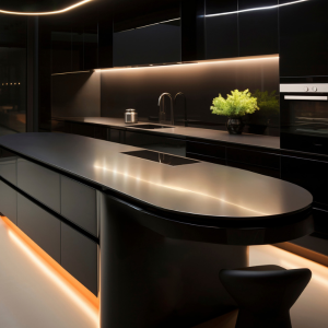 A deep, enigmatic black surface with a plain black speckles, presenting a sleek and sophisticated backdrop for modern designs.