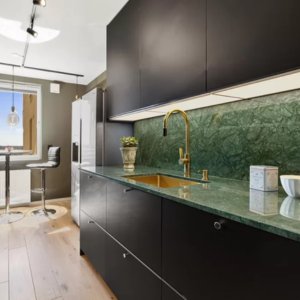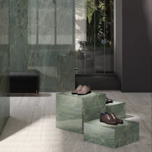 This level of the Missisquoi quarry reveals elegant silvery-grey tones, accented by a delicate web of seafoam green veins that ripple across the surface like ocean waves against a rocky shore. With an exceptionally dense and uniform mineral structure, this hard marble offers outstanding strength, making it a perfect choice for designs that demand durability and sophistication.