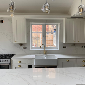 A pristine white base adorned with an ivory cream pattern, delicately inspired by snowdrop shapes with its subtle and gentle design.